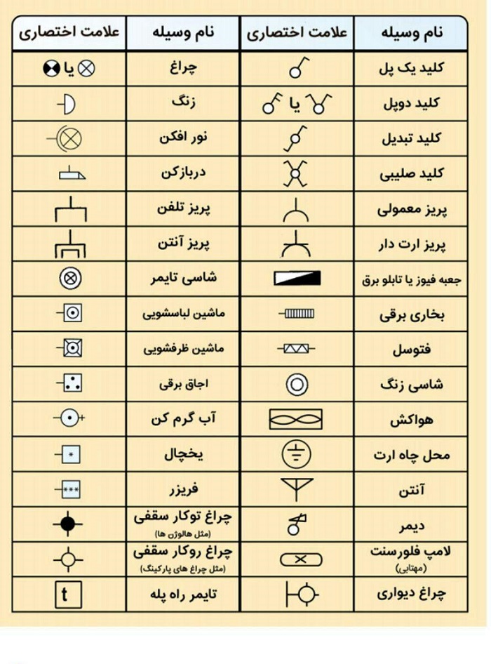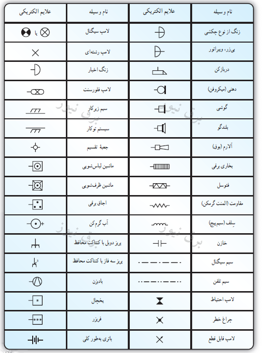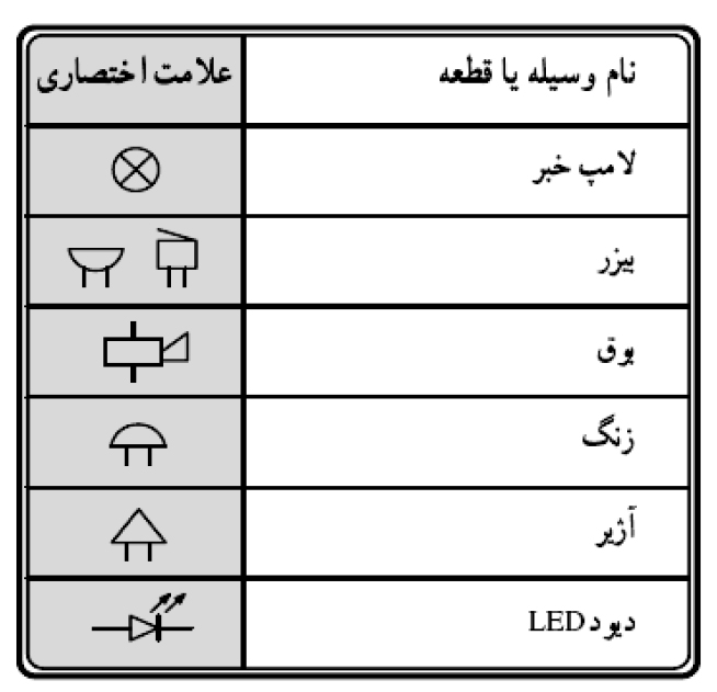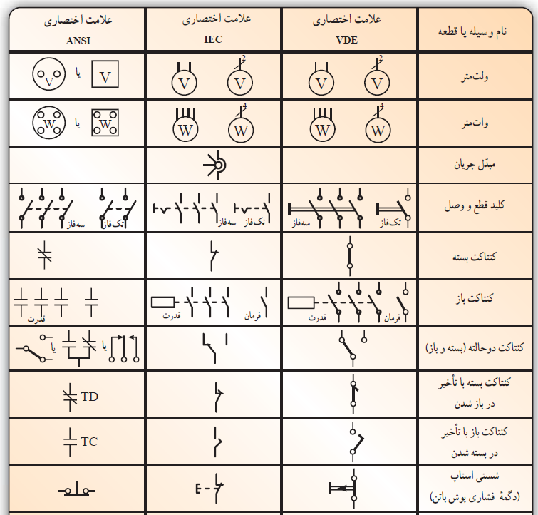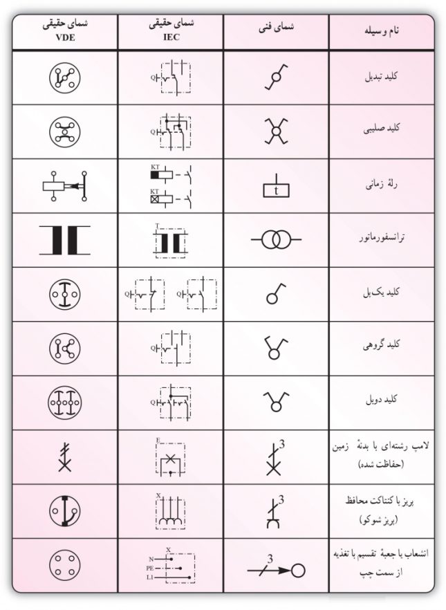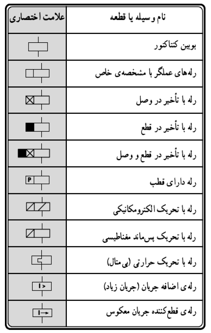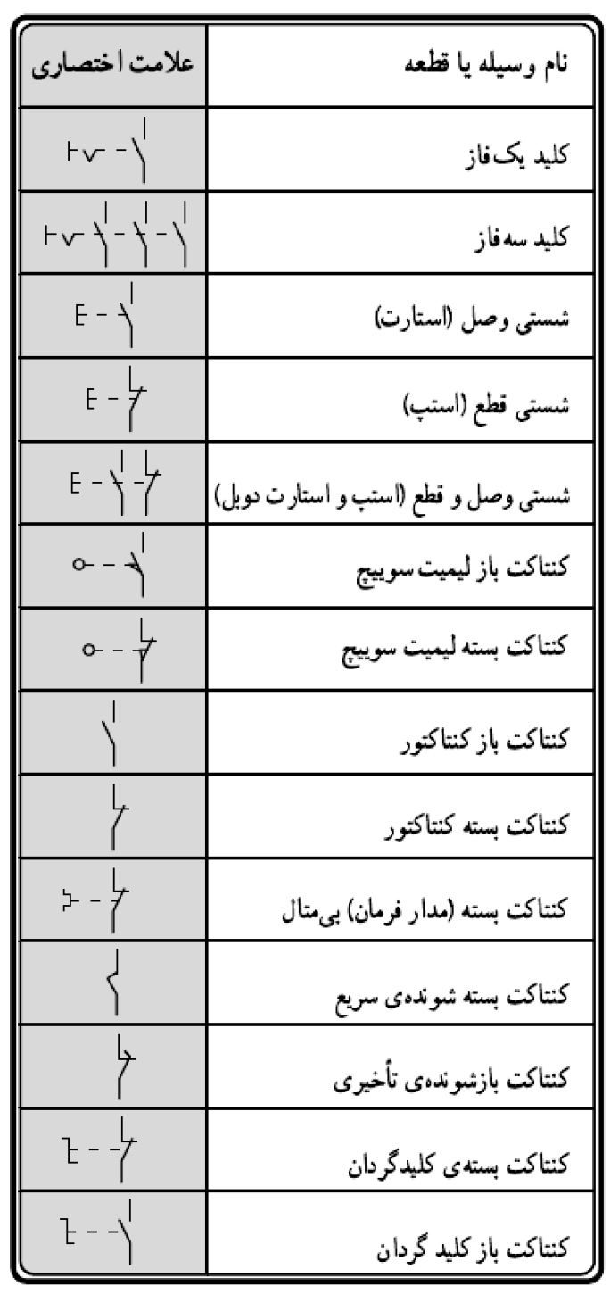 در نقشههای مدار فرمان، معمولاً اجزای زیر دیده میشوند: